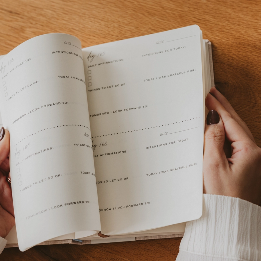 A personal journal to jot down daily affirmations, intentions and more. This journal can help you to focus on the positive aspects of life, big or small, and to cultivate a more optimistic and appreciative mindset. It can be as simple as noting down a pleasant interaction, a beautiful moment, or something you're proud of. Over time, this practice can help shift your focus from what’s lacking to what’s already good in your life, potentially improving your overall well-being and happiness.
